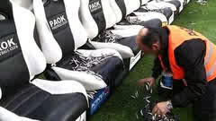 A 34-year-old man covered the bench in several kilograms of anchovies in a stunt that delayed a tense Greek Cup semi-final for more than an hour.